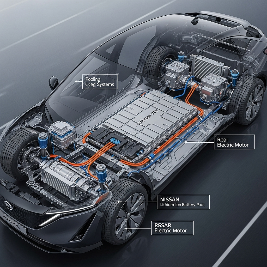 e-4ORCE is Nissan’s dual-motor, torque-vectoring electric AWD system. It constantly balances power between the front and rear axles—and side to side—enhancing grip and stability on wet, snowy, or curvy roads while preserving the smooth, quiet ride EV drivers love.